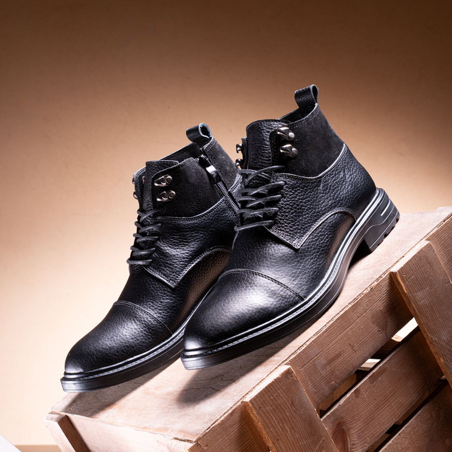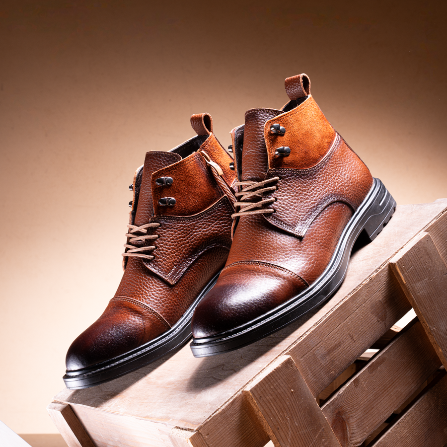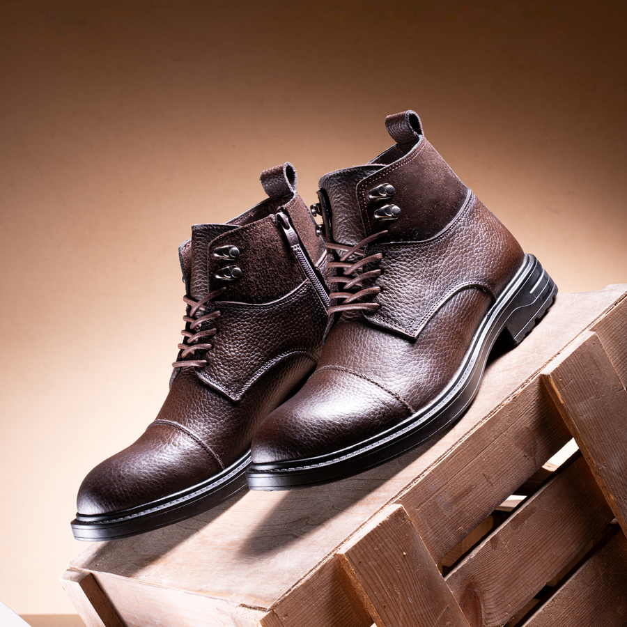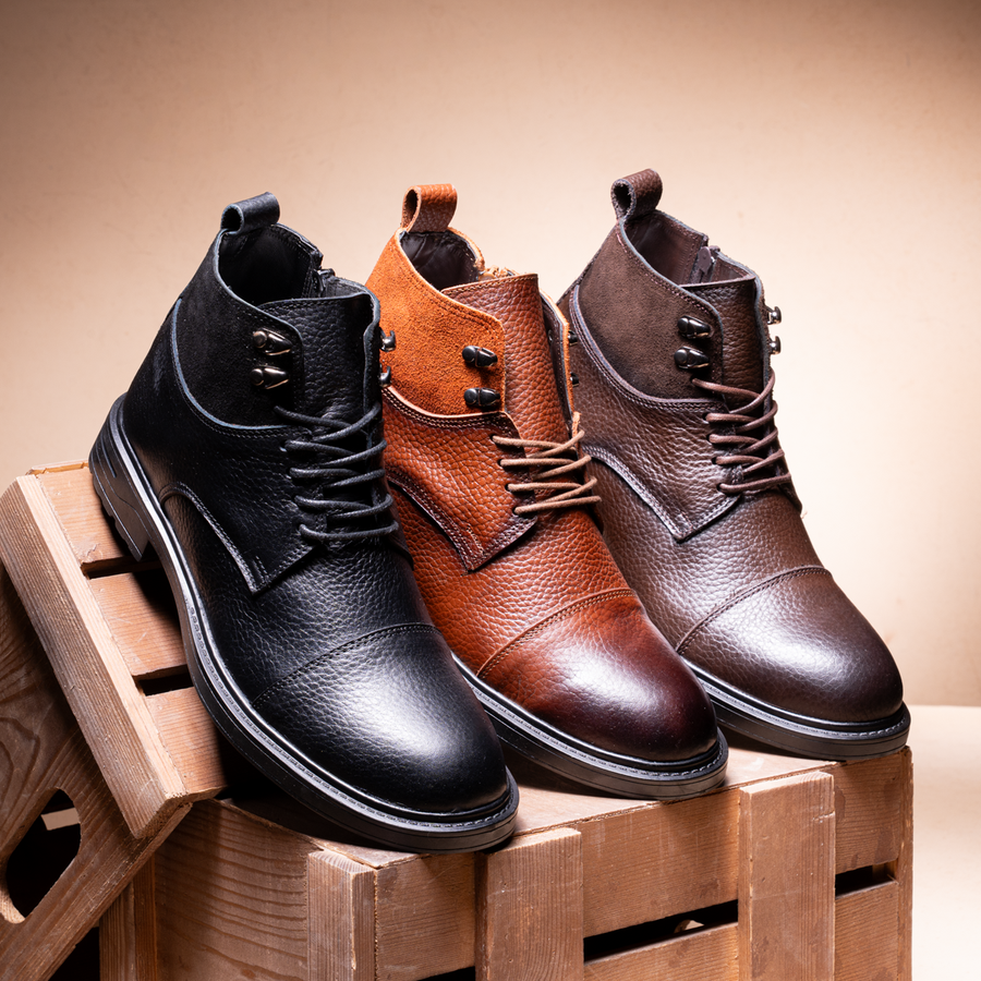 إختر إطلالتك بأناقة مع هاف بوت رجالي جلد طبيعي فاخر، تصميم يجمع بين الفخامة والقوة، يجعل كل خطوة لك مريحة وآمنة.